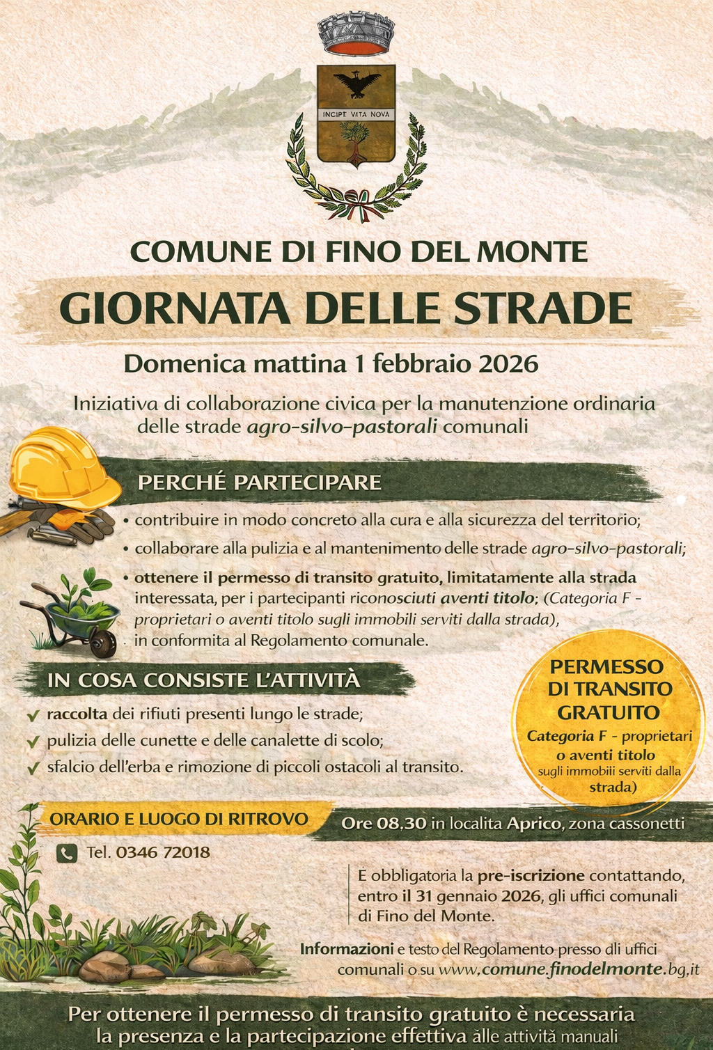 Iniziativa di collaborazione civica per la manutenzione ordinaria delle strade agro-silvo-pastorali comunali.